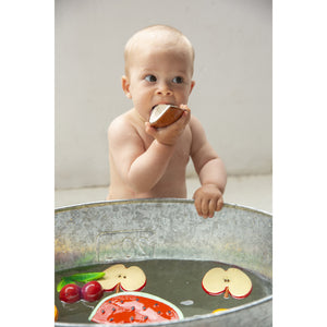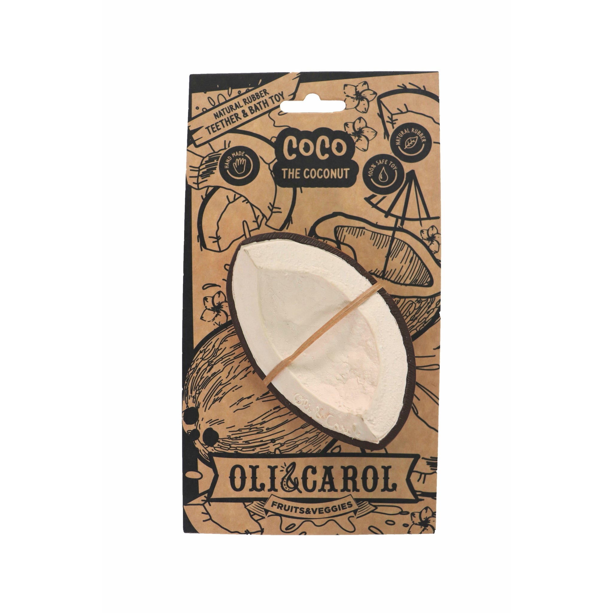 Coco the Coconut is a chewable baby toy for teething, bath time and sensory play. Handmade in 100% natural rubber and hand painted with natural pigments.