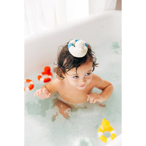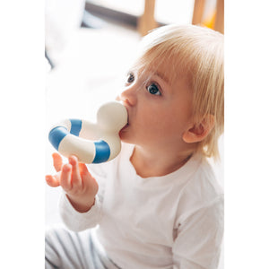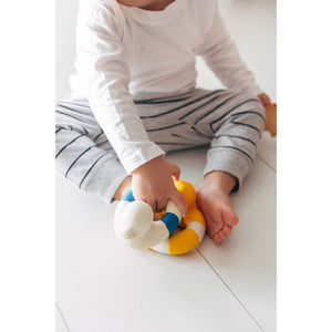 Flo the Floatie is a baby toy for teething, bath time and sensory play. Handmade in 100% natural rubber and hand painted with natural pigments.